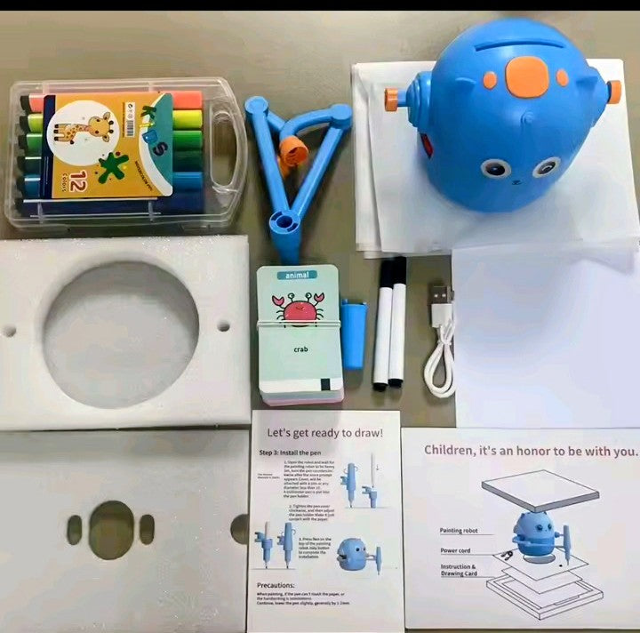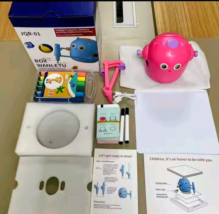 This educational drawing robot helps children explore art and creativity through guided drawing activities. The interactive system provides step-by-step instructions to help kids develop their artistic skills and confidence.